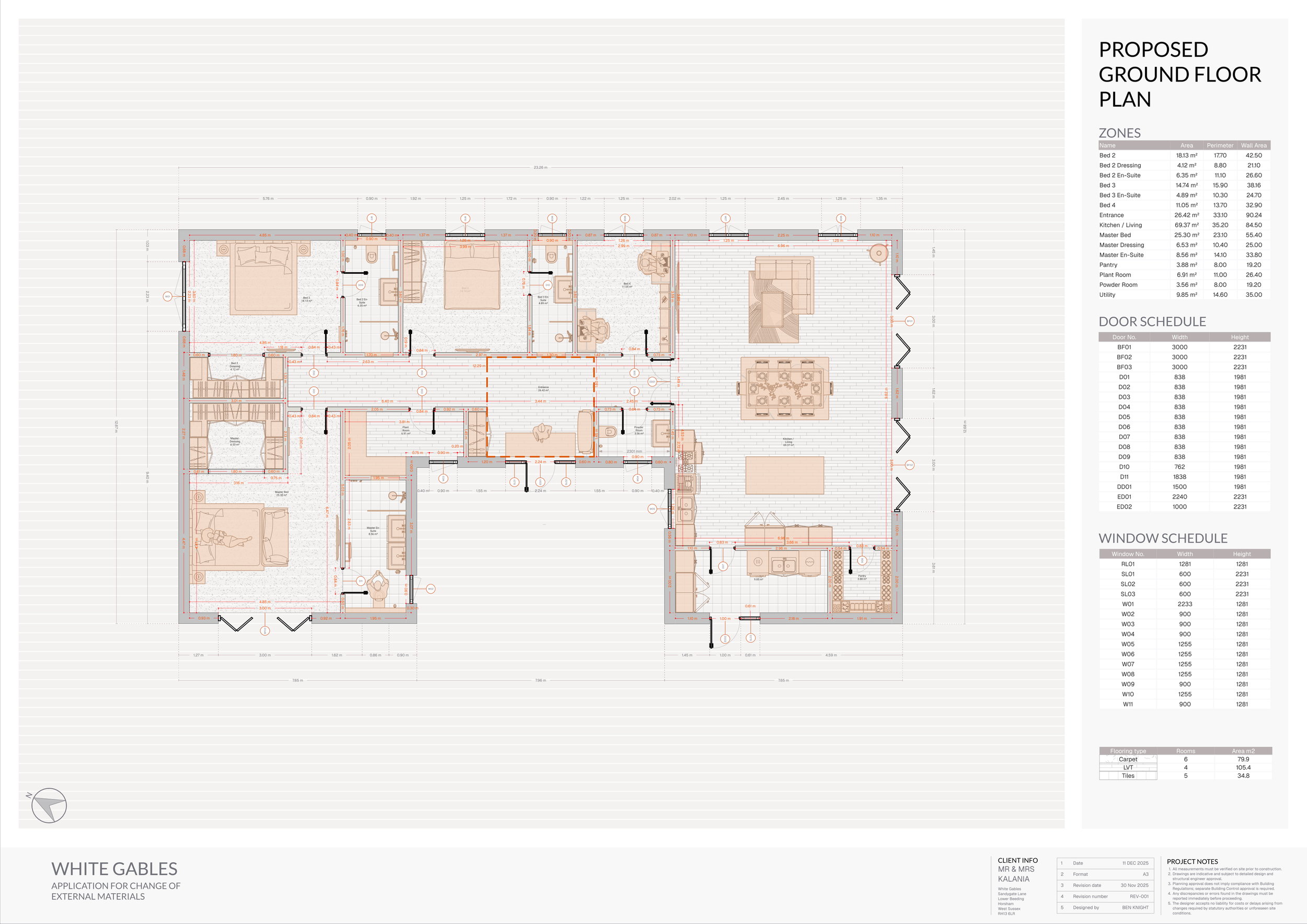 Design and technical drawings for individual new homes, developed to satisfy planning, building regulations and construction sequencing — not just concept visuals.